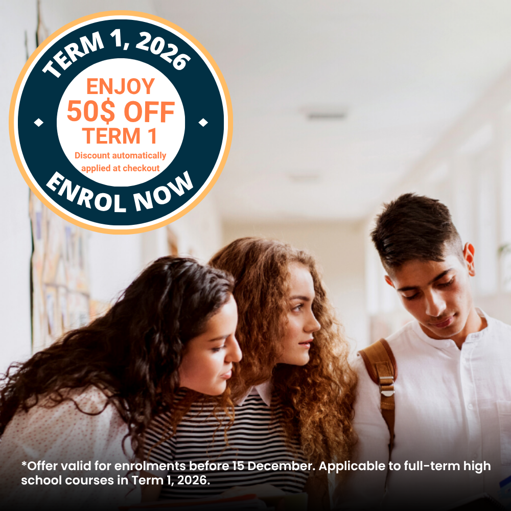 This program is designed to be studied over a full school year. Students joining this course in Term 1 should have completed VCE units 1&2 (B1) or have been assessed prior to enrolling. If registering in Term 2, 3 or 4, please contact us before enrolling to check that this is the recommended learning option for you.
